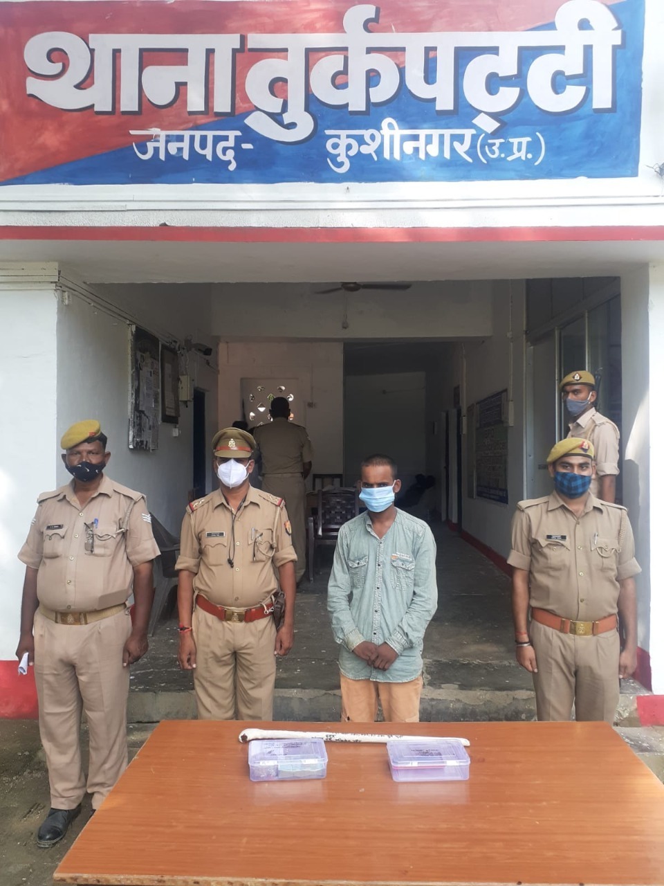 पुलिस अधीक्षक कुशीनगर श्री सचिन्द्र पटेल के निर्देशन में जनपद कुशीनगर में अपराध एवं अपराधियों के विरुद्ध चलाये जा रहे अभियान के क्रम में थाना तुर्कपट्टी पुलिस टीम द्वारा थाना स्थानीय पर पंजीकृत मु0अ0सं0 226/21 धारा 457,380,411 IPC से संबंधित वांछित अभियुक्त पंच्चम उर्फ अभिषेक गौङ पुत्र नवनाथ गौङ साकिन छोटकी सपरी थाना गौरी बाजार जनपद देवरिया हा0मु0 कलेक्ट्री मोहल्ला पादरी बाजार थाना शाहपुर जनपद गोरखपुर को जनता के सहयोग द्वारा ग्राम गङहिया से चोरी करके भागते समय पकङा गया । अभियुक्त को हिरासत में लेकर कड़ाई से पूछताछ करने पर थाना कसया तथा थाना हाटा अन्तर्गत चोरी करना स्वीकार किया गया । अभियुक्त के पास से 28800 रुपया नगद व 6 अदद पीली धातु का गहना व एक अदद अपाची मोटरसाईकिल UP 52 AX 2645 किमत करीब 80 हजार रुपये बरामद किया गया । बरामदगी के आधार पर धारा 411 भादवि की बढोत्तरी की गयी ।
