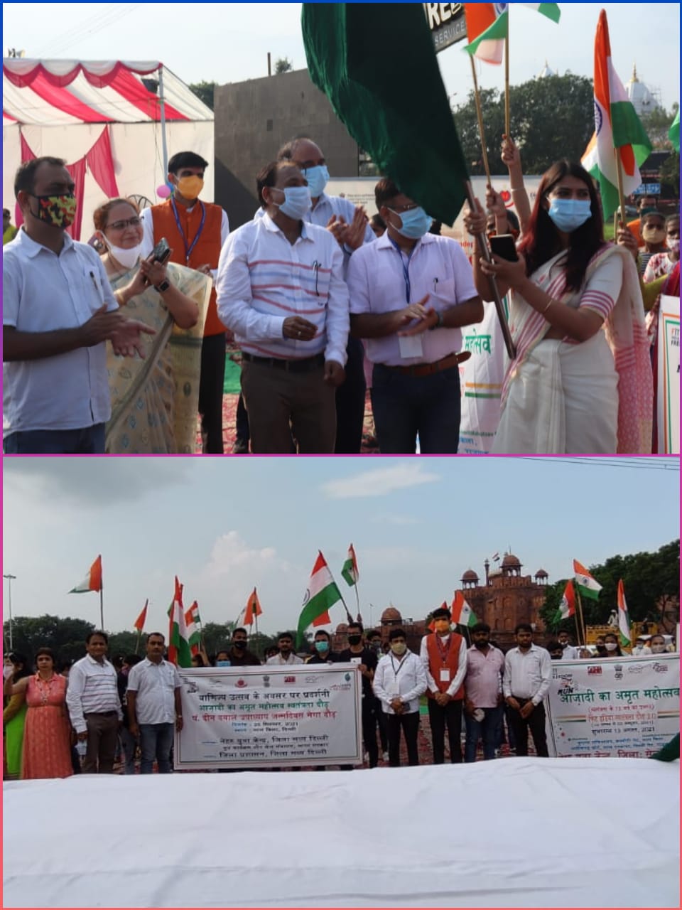 मध्य दिल्ली जिला प्रशासन के सहयोग से विभिन्न विभागों संस्थाओं की सहभागिता से एतिहासिक स्मारक लाल किले मैदान में नेहरू युवा केंद्र सेंट्रल दिल्ली द्वारा आजादी के अमृत महोत्सव पर मेगा फिट इंडिया फ्रीडम रन का आयोजन किया गया जिसमें मुख्य अतिथि जिलाधिकारी आकृति सागर, आईएएस, नागेन्द्र शेखर पति त्रिपाठी, अपर जिलाधिकारी, उपजिलाधिकारी अरविन्द राना, बी एल मीना, सबीना अवस्थी, मंजू कलसियां, राकेश रंजन,एलडीएम, धरती वार्ष्णेय, सिटी मैनेजर एनयूएलएम,हरीश माथुर, डीपीओ, डीडीएमए, मेजर सतीश चंद शर्मा एनसीसी अधिकारी, मोहित कुमार भारतीय, राज्य प्रशिक्षक नेयुकेसं, सुरेश मालिक, नागरिक सुरक्षा समिति इंचार्ज, नीरू शर्मा,तेजस्वनी उत्थान समिति, उपस्थित रहे वहीं कार्यक्रम की अध्यक्षता उपनिदेशक राजेश कुमार जादोन ने की उपस्थित अतिथियों व युवाओ ने राष्ट्रगान गाया तथा अतिथियों ने फ्रीडम दौड़ को हरी झंडी दिखाकर कर रवाना किया गया जो लाल किले के प्रांगण से चलकल सुभाष चंद्र बोस मार्ग से होते हुए लाल किले के प्रांगण पर समाप्त हुई दौड़ में विभिन्न ब्लॉक के युवा व महिला मण्डल के सदस्य प्रवीन कुमार पी स्टार यूथ क्लब, इंदू विवेकानंद, कविता, राधिका यूथ क्लब, सुमन मेघा एम्पायर युथ क्लब, श्रेयांश, नई दिशा यूथ क्लब, ज्योति, ज्योति महिला मंडल, सुशील राय, हकीकत युवा मंडलों, मोनिया युथ क्लब के सदस्यों के अथक प्रयासों से कार्यक्रम सफल हुआ