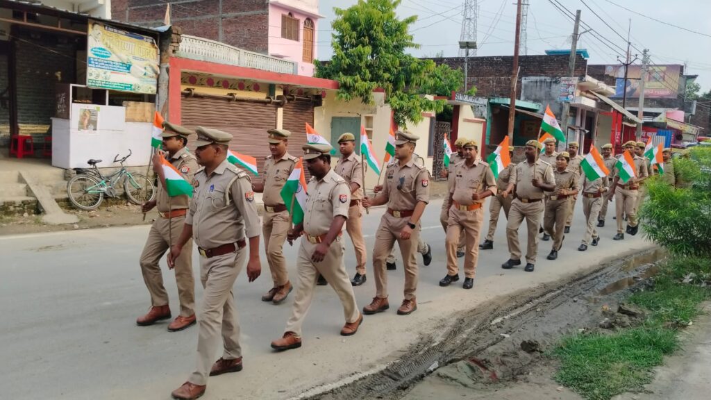 उत्तर प्रदेश सरकार और शासन के आदेशों के क्रम में पुलिस अधीक्षक श्री सोमेंद्र मीणा ने दिनांक 13 से 15 अगस्त के मध्य स्वतंत्रता दिवस के अवसर पर हर घर तिरंगा अभियान का कार्यक्रम आयोजित करने के निर्देश दिये। इसके तहत जनपद के समस्त थानों द्वारा अपने-अपने थाना क्षेत्र अंतर्गत अमर शहीद स्मारकों पर राष्ट्रध्वज का ध्वजारोहण कर झंडा गीत एवं राष्ट्रीय गीतों का वादन कराया जा रहा है तथा अमर शहीदों को भावपूर्ण विनम्र श्रद्धांजलि अर्पित किया जा रहा है। मंगलवार को इस कार्यक्रम के अंतर्गत थाना ठूठीबारी पुलिस द्वारा हर घर तिरंगा कार्यक्रम के अन्तर्गत शहीद स्मारक ठूठीबारी पर पुलिस बैंड का वादन करते हुए राष्ट्रगान गाकर अमर शहीद सपूतों को भावपूर्ण विनम्र श्रद्धांजलि अर्पित की गई।