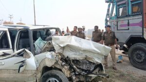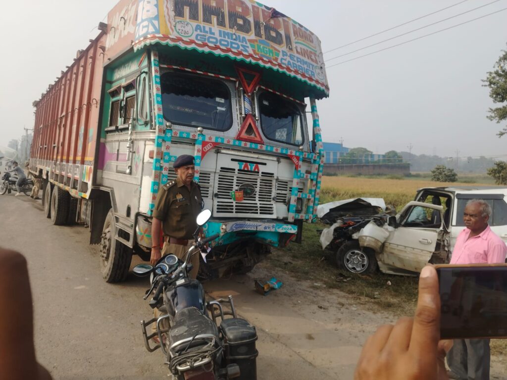 महाराजगंज टाटा सफारी और ट्रक में आमने-सामने