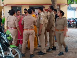 पुलिस अमिला क्षेत्र के बाबा थानीदास में एक जमीनी विवाद में महिला व एक किशोरी को कोतवाली लाई थी।