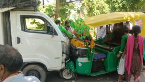 थ्री व्हीलर तथा फोर व्हीलर के आमने सामने