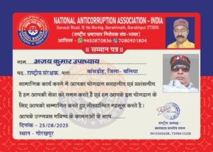 गोरखपुर, उत्तर प्रदेश – आज भारत में सबसे बड़ी चुनौतियों में से एक है भ्रष्टाचार, जिसने समाज और प्रशासन दोनों की जड़ों को गहराई तक प्रभावित किया है। ऐसे माहौल में नेशनल एंटी करप्शन एसोसिएशन इंडिया (राष्ट्रीय भ्रष्टाचार संघ भारत) एक मजबूत संगठन के रूप में उभर कर सामने आया है, जो जनता को जागरूक करने और भ्रष्टाचार के खिलाफ आवाज़ बुलंद करने का काम कर रहा है।