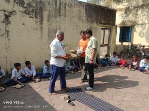 मध्यान्ह भोजन के साथ जलेबी का भोज कराया गया जहां विध्यालय के *प्रधानाचार्य श्री आरीफ अहमद मंसुरी जी व सहायक प्राध्यापक श्री संतोष जी रेड्डी* का पुर्ण सहयोग प्राप्त हुआ आज के ईस आयोजन के आर्थिक मुख्य सहयोग कर्ता *सुश्री दीपीका जोशी व डॉ.ज्योती जोशी* रही जहां संगठन के उपस्थित गणमान्य सर्व श्री