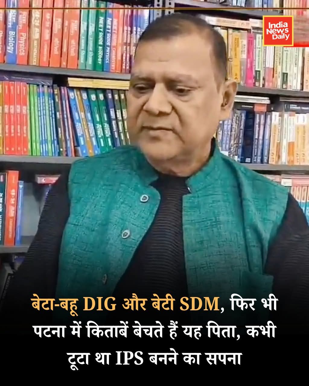 पटना के 64 वर्षीय अनिल कुमार ने स्वाभिमान की एक अनोखी मिसाल पेश की है। उनके बेटे आशीष भारती और बहू बिहार पुलिस में डीआईजी (DIG) हैं, जबकि बेटी अनीशा भारती पटना में एसडीएम (SDM) के पद पर तैनात हैं। बच्चों के इतने बड़े अधिकारी होने के बावजूद, अनिल कुमार आज भी पटना के बोरिंग रोड पर अपनी पुरानी किताबों की दुकान ‘कुमार बुक सेंटर’ चलाते हैं।