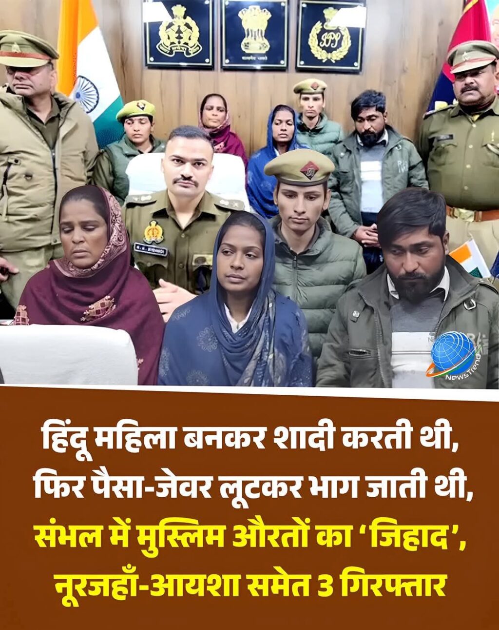 उत्तर प्रदेश के संभल जिले में पुलिस ने एक संगठित ‘लुटेरी दुल्हन’ गिरोह का पर्दाफाश किया है। पुलिस के अनुसार, कुछ महिलाएँ फर्जी पहचान के जरिए शादियाँ कराकर ससुराल से नकदी और सोने–चाँदी के जेवर लेकर फरार हो जाती थीं। इस मामले में नूरजहाँ खातून (काजल उर्फ) समेत तीन आरोपितों को गिरफ्तार किया गया है।