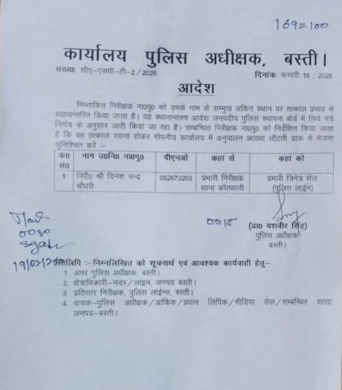 मामले की गंभीरता को देखते हुए पीड़िता ने पुलिस अधीक्षक बस्ती डॉ. यशवीर सिंह को प्रार्थना पत्र सौंपकर निष्पक्ष जांच एवं न्याय की मांग की थी। एसपी बस्ती ने त्वरित संज्ञान लेते हुए जांच के आदेश दिए और प्राथमिक जांच के उपरांत कोतवाल दिनेश चंद्र चौधरी को तत्काल प्रभाव से पुलिस लाइन स्थित प्रभारी त्रिनेत्र सेल में संबद्ध कर दिया।