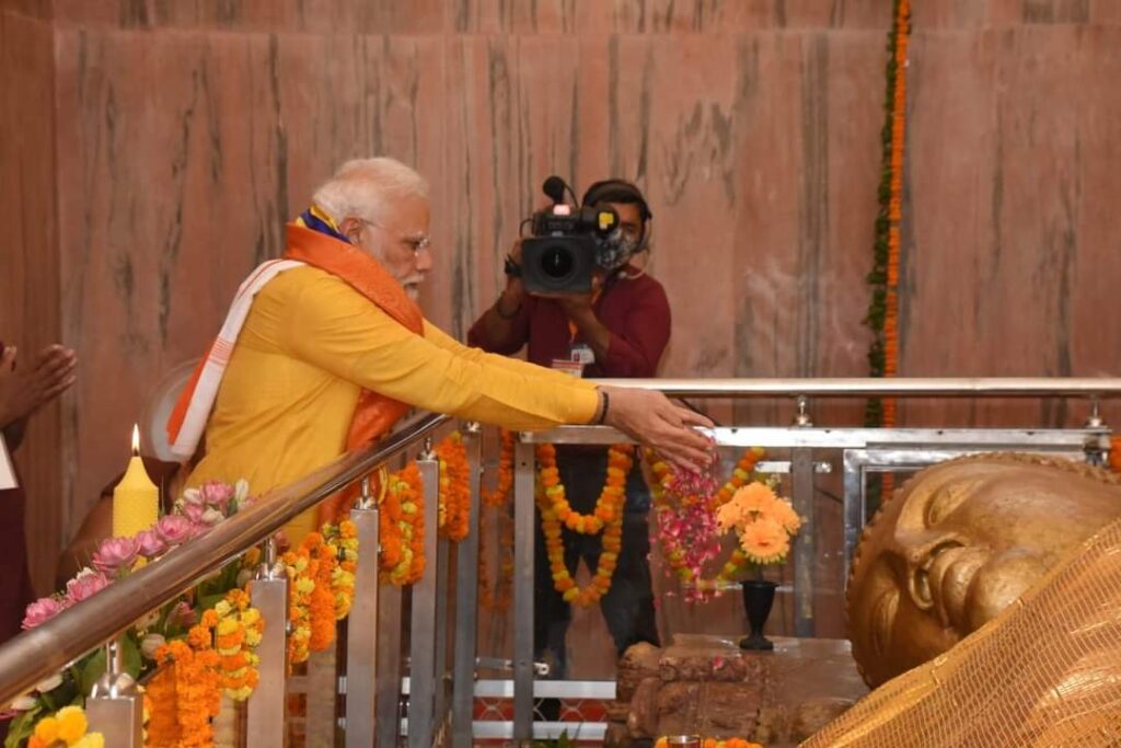 नेपाल से वापसी के बाद प्रधानमंत्री ने महापरिनिर्वाण स्थली कुशीनगर में किया पूजा अर्चना