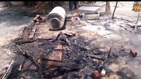 ।झोपड़ी जलने की सूचना पाकर स्थानीय पुलिस मौके पर पहुँची तबतक झोपड़ी जल चुकी थी।