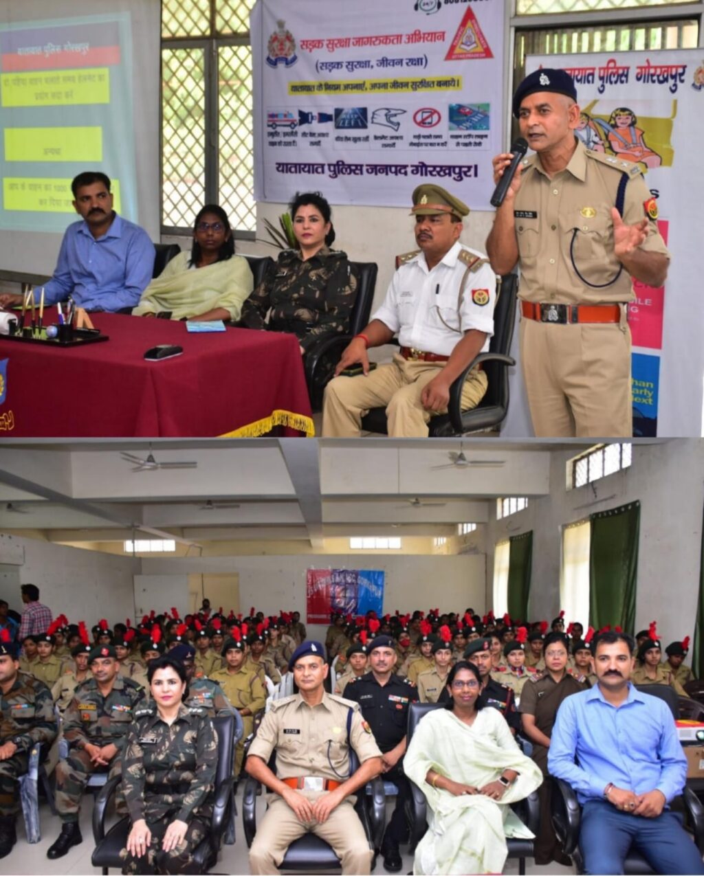 गोरखपुर – उत्तर प्रदेश शासन द्वारा दिए गए निर्देश पर यातायात पुलिस ने सड़क सुरक्षा एवं यातायात जागरूकता अभियान के तहत बुधवार को पुलिस अधीक्षक यातायात व आरटीओ द्वारा दीनदयाल उपाध्याय विश्वविद्यालय के 15 उत्तर प्रदेश गर्ल्स एनसीसी बटालियन के सभागार में सड़क सुरक्षा व यातायात जागरूकता में आधी दुनिया यानी की महिलाओं की भागीदारी पर जनजागरुकता एवं विचार विमर्श किया गया। जिसमें एनसीसी बटालियन की कप्तान डॉक्टर विनीता पाठक,प्राध्यापक राजनीति शास्त्र तथा यातायात निरीक्षक मनोज राय, यातायात सेफ्टी मैनेजर सुमित मिश्रा व अन्य सैन्य अधिकारी मौजूद रहे ।