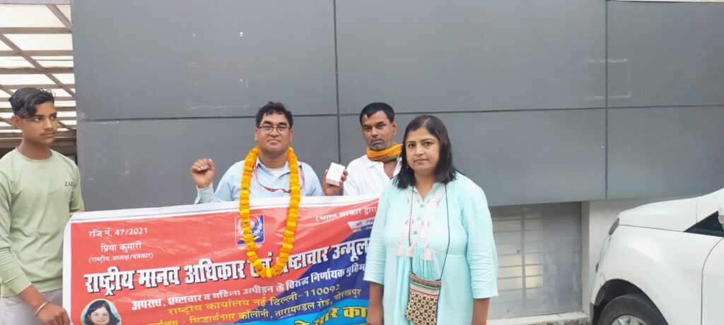 प्रशासन की मदत करना एवं हर योजना को जनता तक पहुंचाने में सबको बता कर जागरूक किया जाता है। इस अवसर पर राष्ट्रीय अध्यक्ष प्रिया कुमारी एवं अन्य पदाधिकारियों ने मिलकर पत्रकार वर्ग को सम्मानित किया।