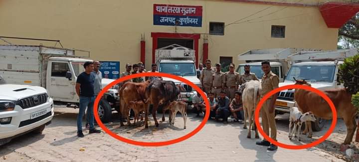इस तस्वीर में भी बछड़े दिख रहे है लेकिन एसएचओ और उनकी टीम ने इसे बड़ी रिकवरी बताकर पकड़े गए वाहनों और लोगो को गोवध और पशु क्रूरता में जेल भेजा था और कल के मामले में वही एसएचओ साहब इसे दुधारू बताकर पशुओं से लदी पिकप को छोड़ दिया और अपने कारनामो पर पर्दा डालने के लिए एक निर्दोष युवक श्रीनिवास पांडेय पुत्र सुरेंद्र पांडेय को बलि का बकरा बना दिया।
