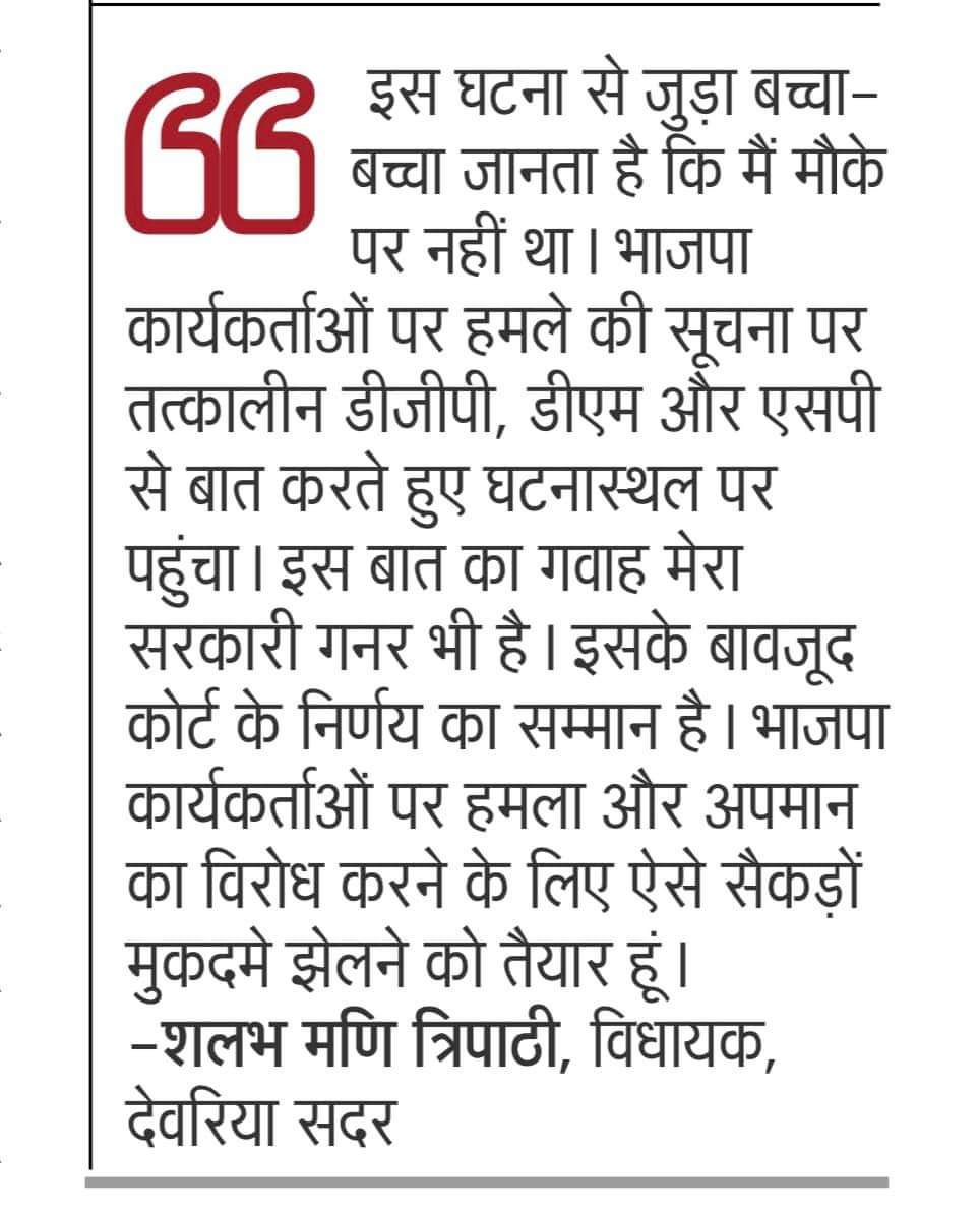 रही बात मुकदमों की तो न्याय की किसी भी लड़ाई और भाजपा कार्यकर्ताओं के सम्मान की जंग लिए एक नहीं सौ सौ मुकदमे स्वीकार हैं 😊 जय देवरिया 🙏